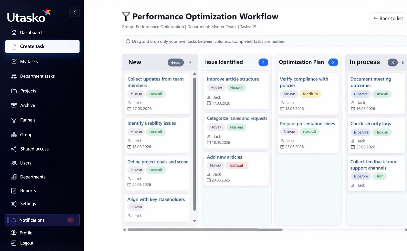 Utasko’s AI helps teams move faster with summaries, next-step suggestions, task breakdowns, and blocker visibility.