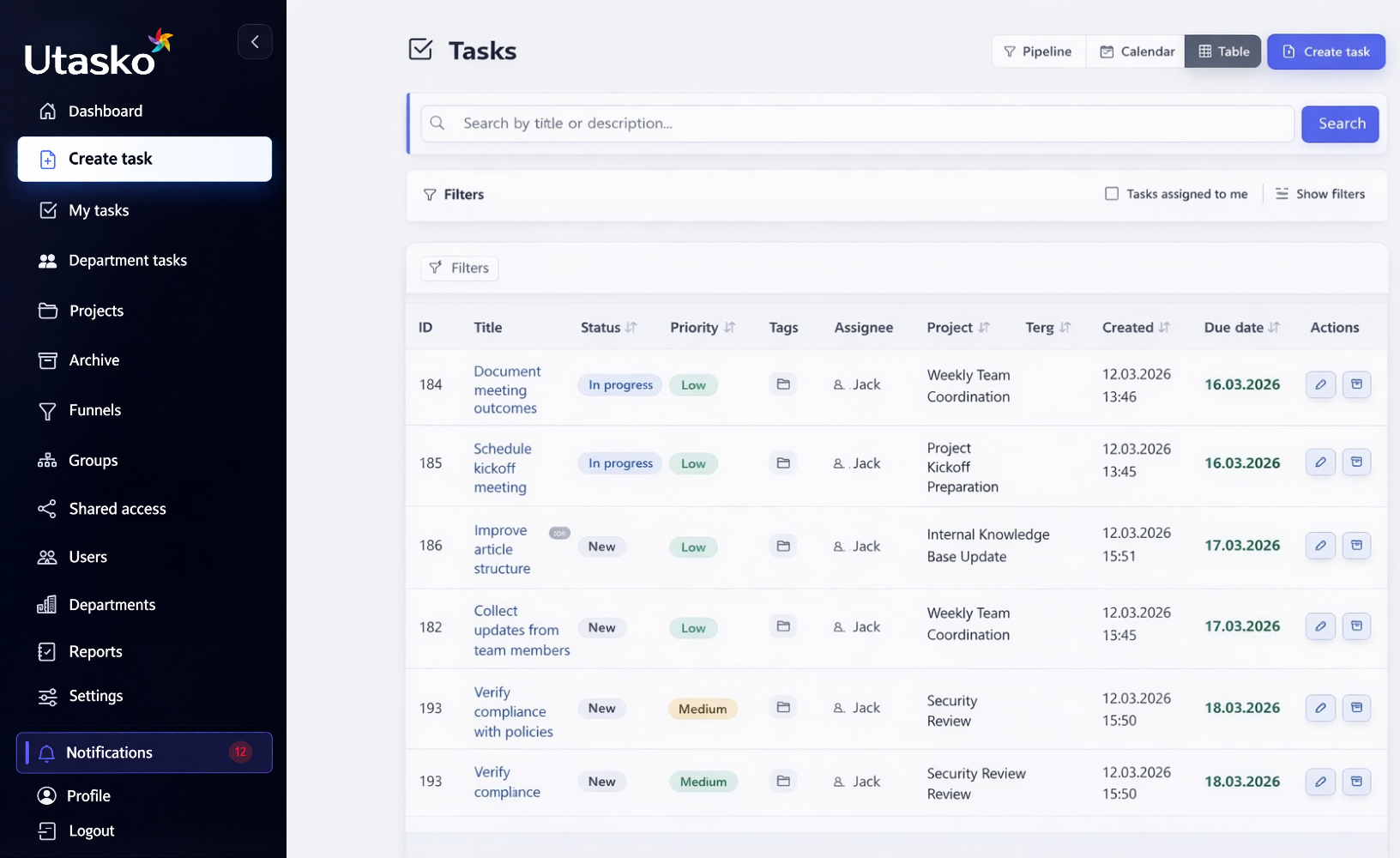 «Utasko gave us one place to manage deadlines, ownership, and follow-ups. We stopped losing tasks in Slack threads.»